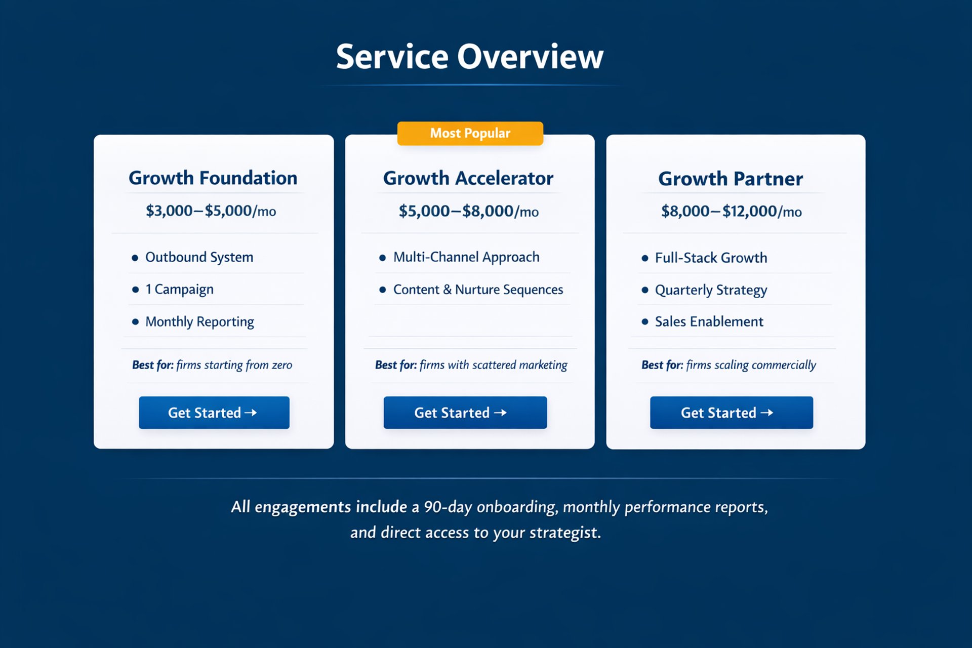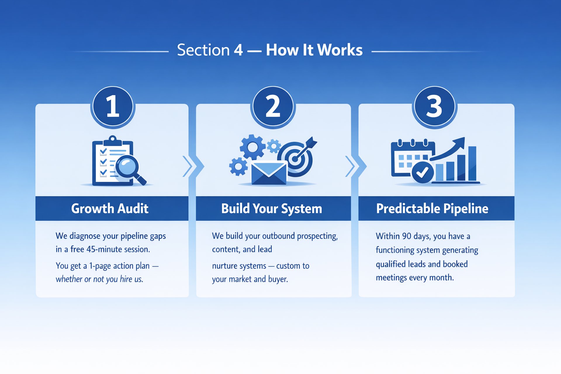 I focus on building structured, repeatable client acquisition systems—so your pipeline stays active and opportunities don’t go cold.